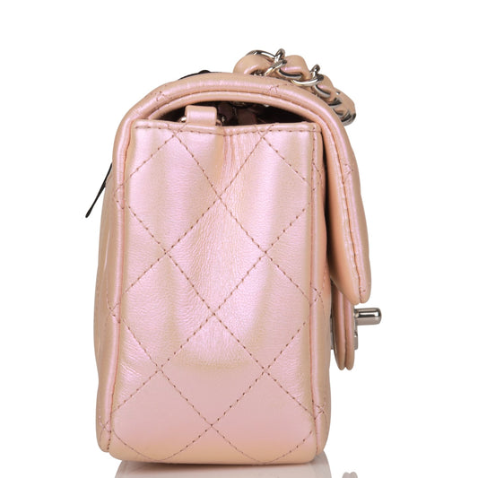 Chanel Mini Rectangular Flap Bag Pink Iridescent Lambskin Silver Hardware