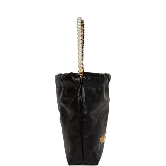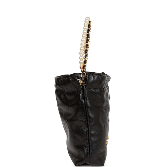 Chanel Mini 22 Bag Black Calfskin and Pearl Antique Gold Hardware