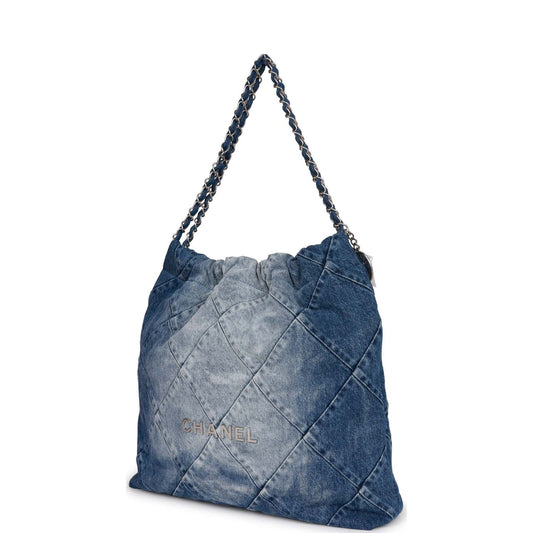 Chanel Large 22 Bag Faded Blue Denim Silver Hardware