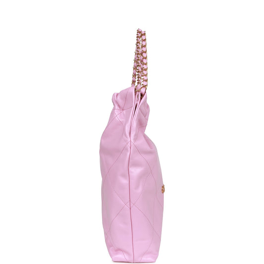 Chanel Small 22 Bag Pink Calfskin Antique Gold Hardware