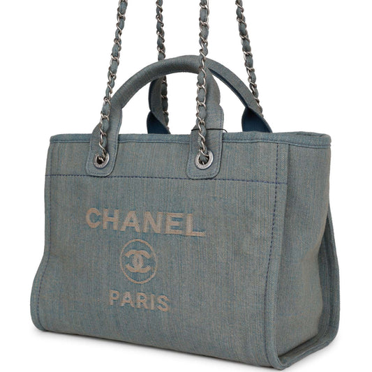 Chanel Small Deauville Shopping Tote Distressed Blue Denim Aged Silver Hardware