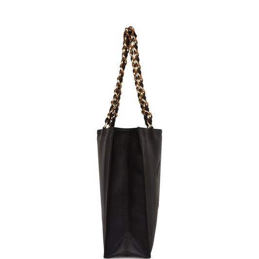 Chanel Vintage CC Chain Shopping Tote Bag Black Lambskin Gold Hardware