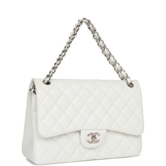 Chanel Jumbo Classic Double Flap Bag White Caviar Silver Hardware