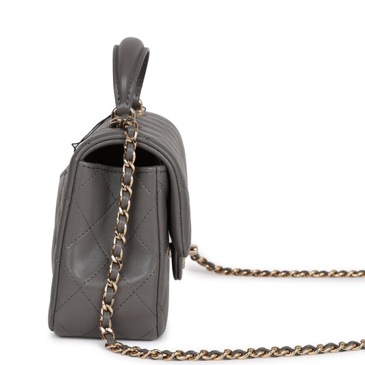 Chanel Mini Rectangular Flap Bag with Top Handle Dark Grey Lambskin Light Gold Hardware
