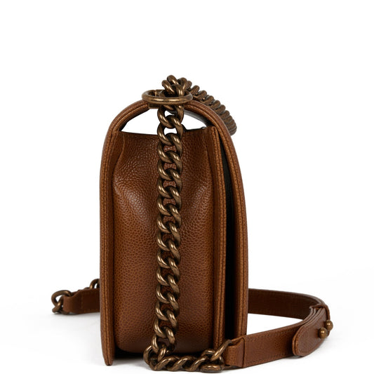 Chanel Large Boy Bag Brown Caviar Antique Gold Hardware