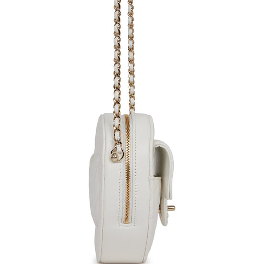 Chanel CC In Love Large Heart Bag White Lambskin Light Gold Hardware