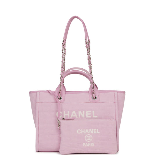 Chanel Small Deauville Shopping Bag Pink Boucle Light Silver Hardware
