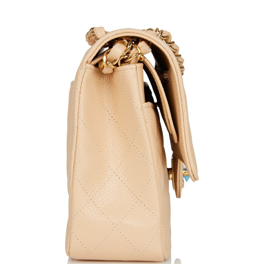 Chanel Medium Classic Double Flap Bag Beige Caviar Gold Hardware