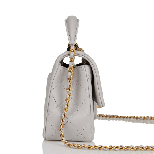 Chanel Mini Rectangular Flap Bag with Top Handle Grey Lambskin Antique Gold Hardware