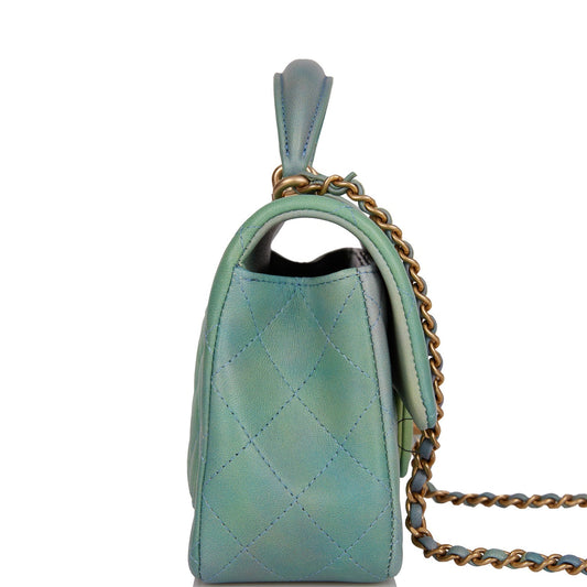 Chanel Mini Rectangular Flap Bag with Top Handle Green Ombre Lambskin Antique Gold Hardware