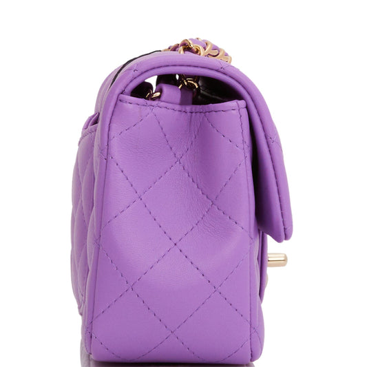 Chanel Mini Rectangular Flap Bag Purple Lambskin Light Gold Hardware