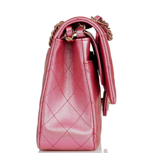 Chanel Medium Classic Double Flap Bag Rose Iridescent Caviar Light Gold Hardware