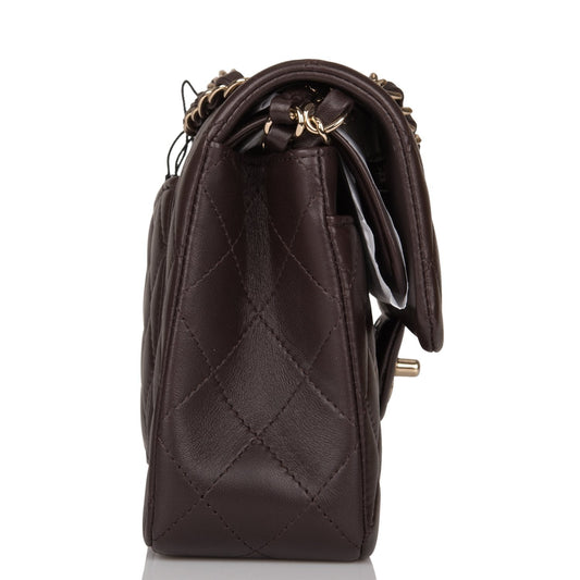 Chanel Small Classic Double Flap Bag Dark Brown Lambskin Light Gold Hardware