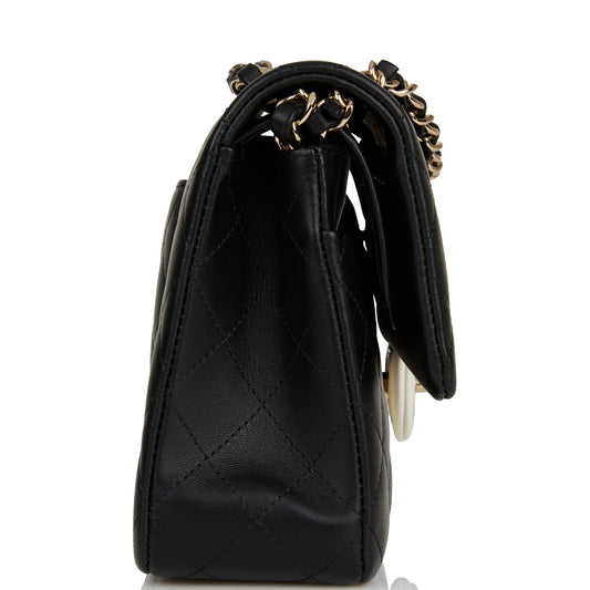 Chanel Mini Rectangular Flap Bag with Top Handle Black Lambskin Light Gold Hardware