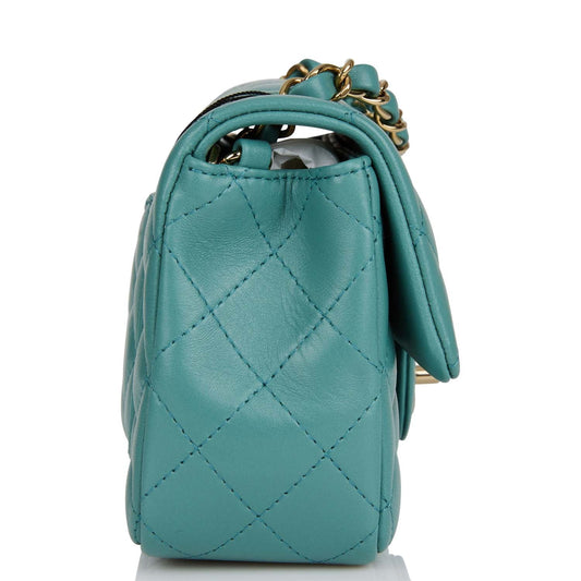 Chanel Mini Rectangular Flap Bag Turquoise Lambskin Light Gold Hardware