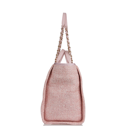 Chanel Large Deauville Shopping Bag Pink Lurex Gold Hardware