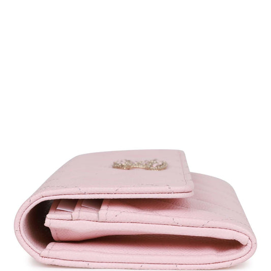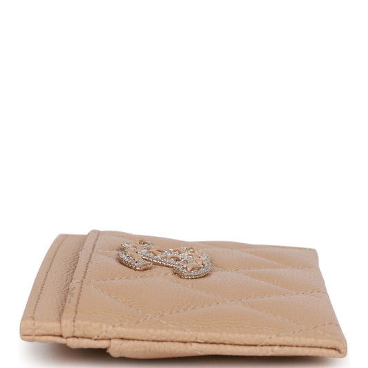 Chanel Card Holder Wallet Beige Caviar Crystal and Light Gold Hardware