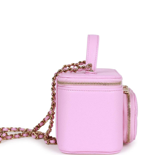 Chanel Small Top Handle Vanity Case Pink Quilted Caviar Gold Hardware