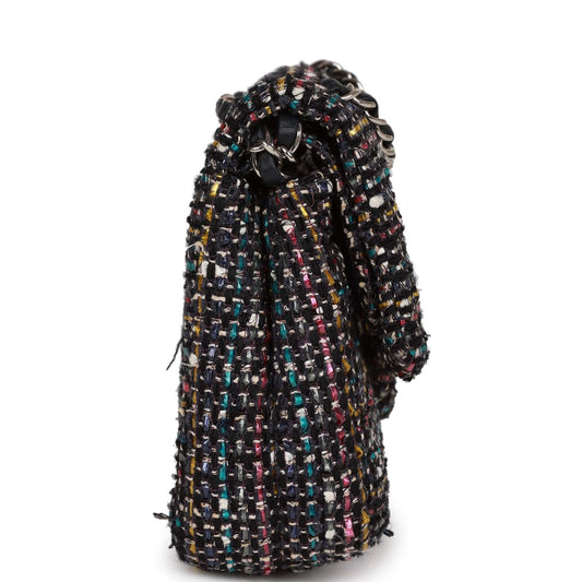 Chanel Medium Classic Double Flap Bag White and Black Tweed Boucle Silver Hardware
