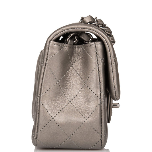Chanel Mini Rectangular Flap Bag Ruthenium Metallic Lambskin Silver Hardware