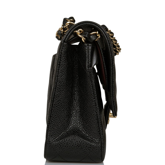 Chanel Black Quilted Caviar Medium Classic Double Flap Bag Gold Hardware