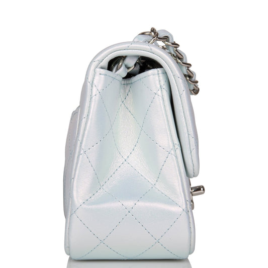 Chanel Mini Square Flap Bag Blue Iridescent Lambskin Silver Hardware