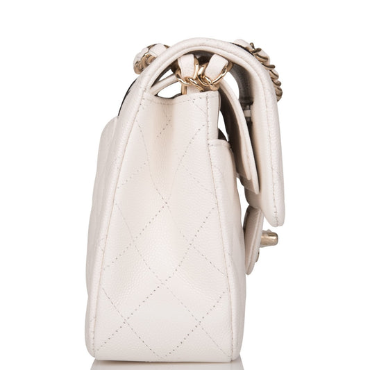 Chanel Small Classic Double Flap White Caviar Light Gold Hardware