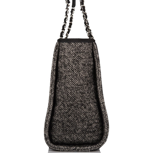 Chanel Small Deauville Shopping Bag Black Wool Silver Hardware