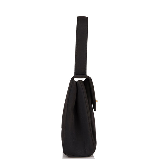 Chanel Vintage Mini Kelly Bag Black Satin Gold Hardware