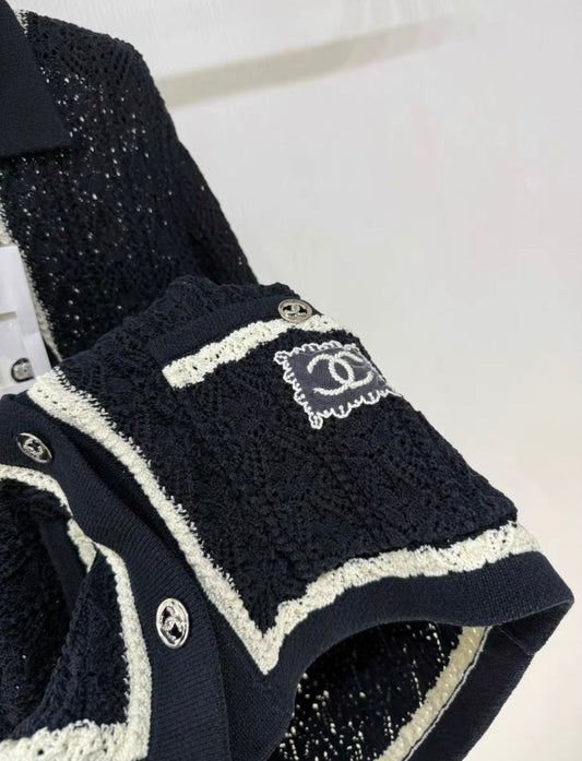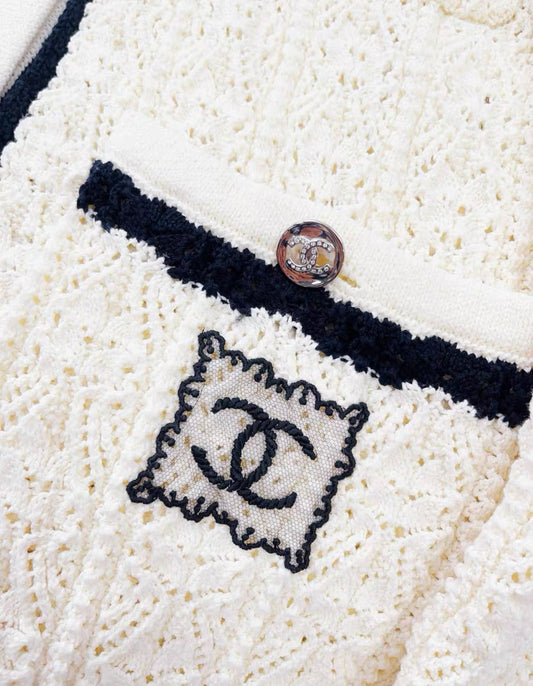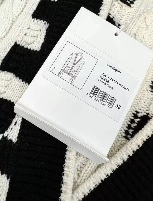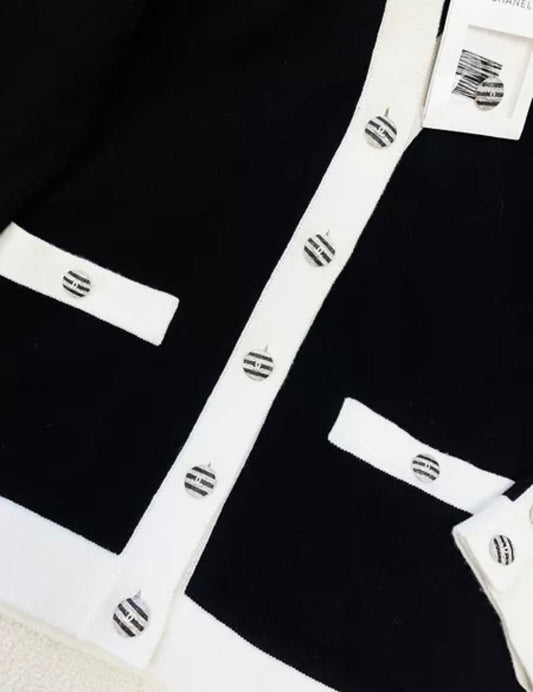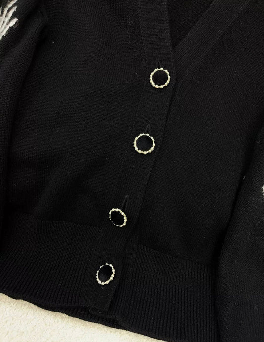 Chanel 21k Black & Ecru Cardigan with Pearl fringe size 36