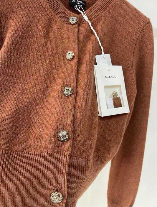 Chanel 24A cashmere cardigan Brown Color with rhinestone button size 36