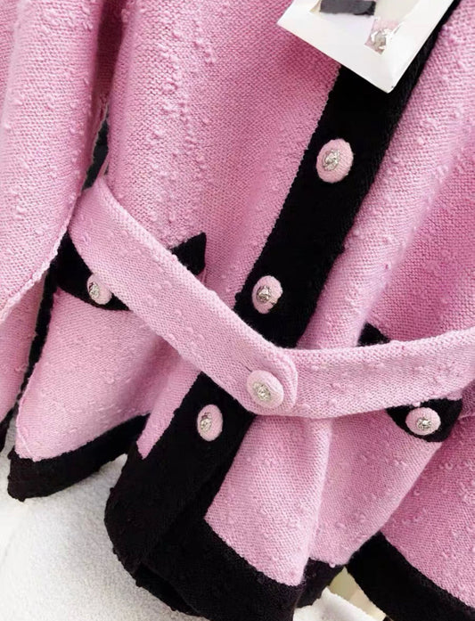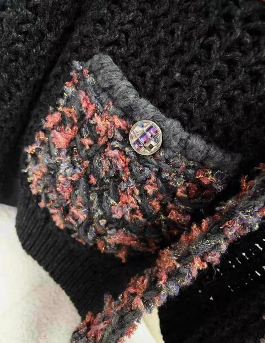 Chanel 24 Fall/Winter Wool Pink & Black Cardigan size 40