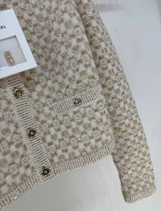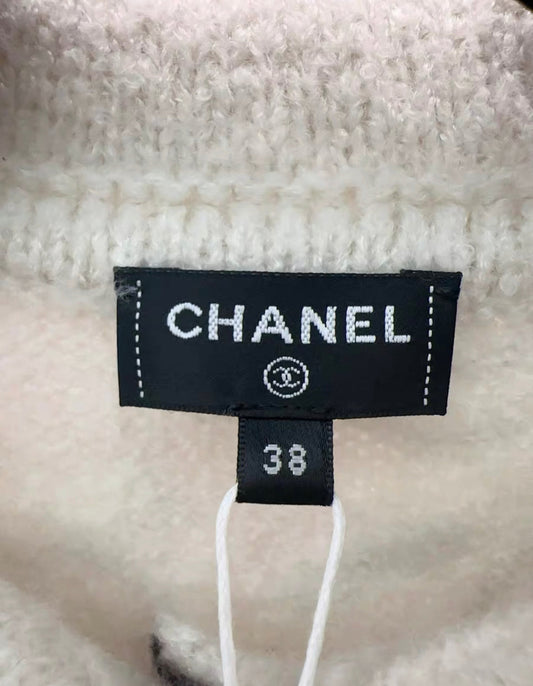 Chanel 23N coco neige Beige/Pink Cashmere Cardigan size 38