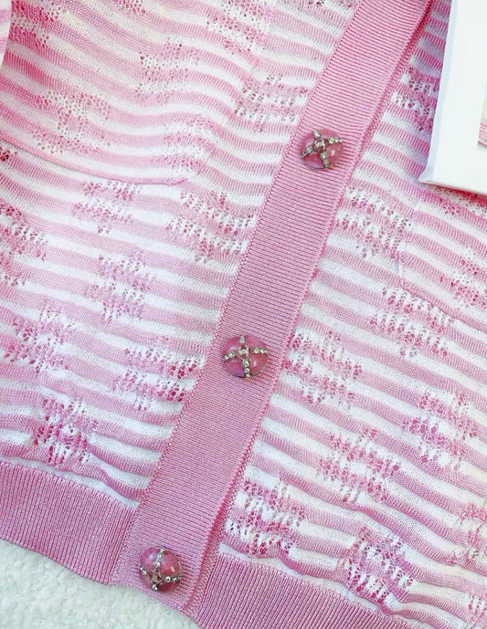 Chanel 23P Rose Crystal CC Buttons Viscose Cropped Cardigan size 36
