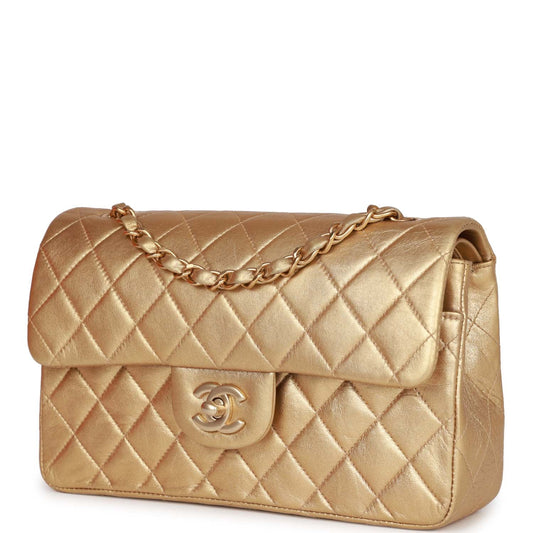 Chanel Vintage Small Classic Double Flap Bag Gold Metallic Lambskin Gold Hardware