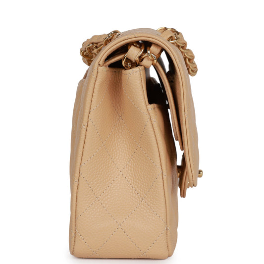 Chanel Medium Classic Double Flap Bag Beige Caviar Gold Hardware