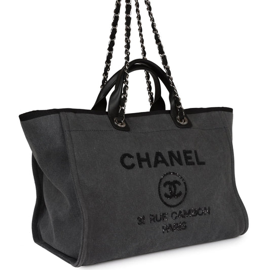 Chanel Medium Deauville Shopping Tote Dark Grey Denim Silver Hardware
