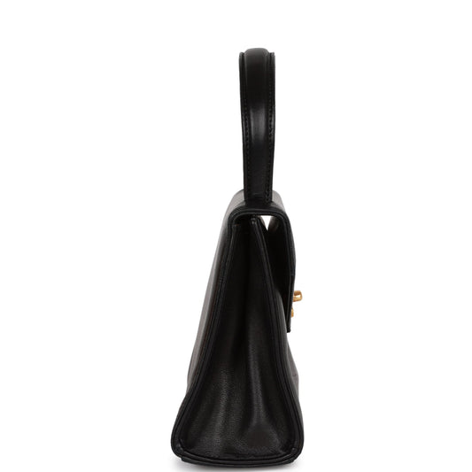 Chanel Vintage Flap Bag with Top Handle Black Lambskin Gold Hardware