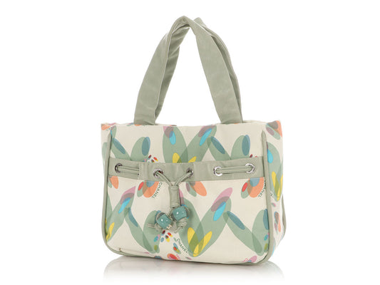 Chanel Light Green Lambskin and Multicolor Canvas Tote
