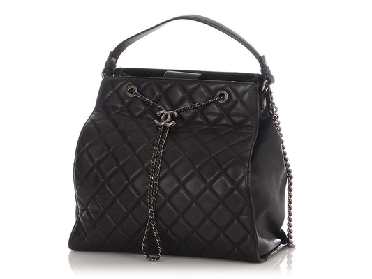 Chanel Large Black Quilted Soft Caviar CC Accordion Bucket Bag