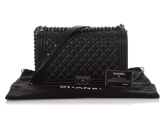 Chanel New Medium Black Quilted Lambskin Boy Bag