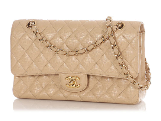 Chanel Medium/Large Light Beige Quilted Caviar Classic Double Flap