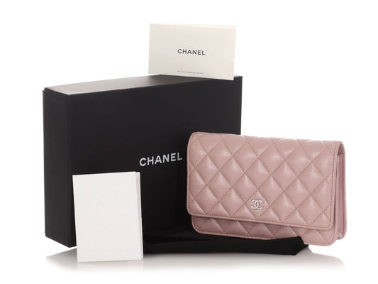 Chanel Light Pink Quilted Caviar Wallet on Chain WOC