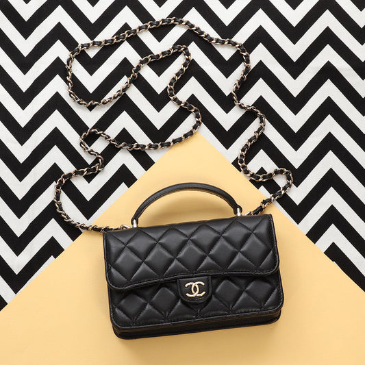 Chanel Mini Black Quilted Lambskin Top Handle Phone Holder