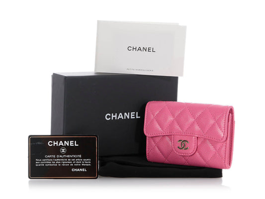 Chanel Pink Quilted Caviar Flap Card Case