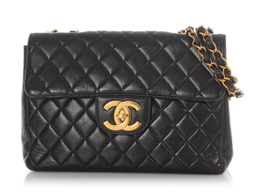 Chanel Vintage Extra Large Black Quilted Lambskin Classic Flap