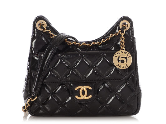 Chanel Small Black Quilted Shiny Calfskin Wavy CC Hobo