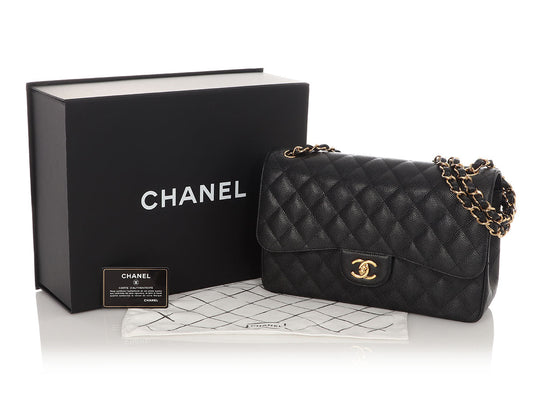 Chanel Jumbo Black Quilted Caviar Classic Double Flap
