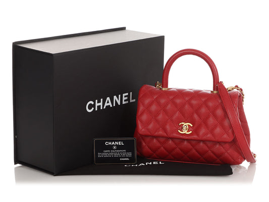 Chanel Mini Red Quilted Caviar Coco Handle
