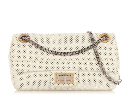 Chanel White Perforated Leather Drill Reissue Flap